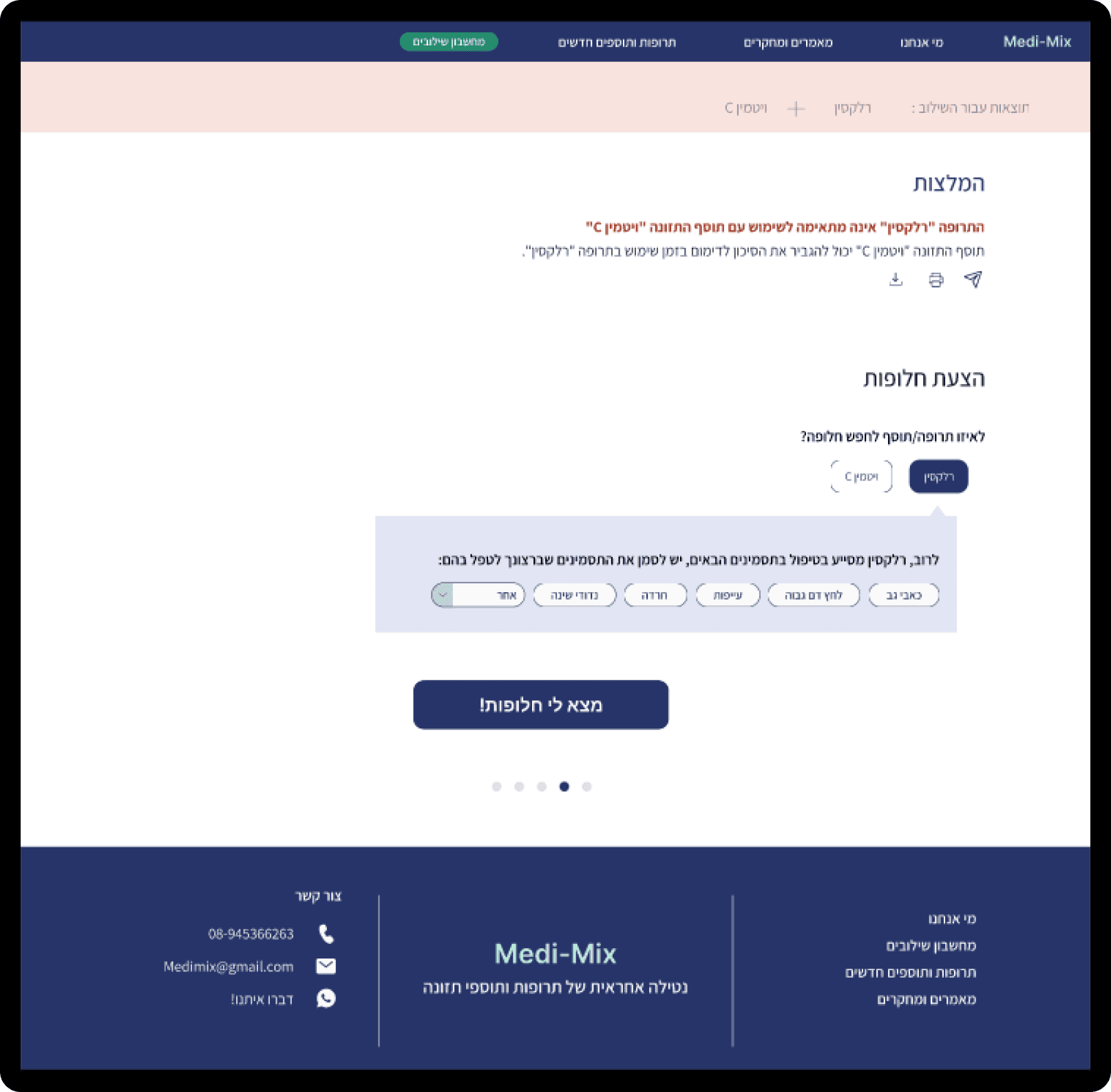 Medi-Mix is a web-based platform designed to help users quickly check for potential interactions between medications and nutritional supplements. This case study outlines our UX/UI design process for creating an intuitive and user-friendly interface for this critical health tool.