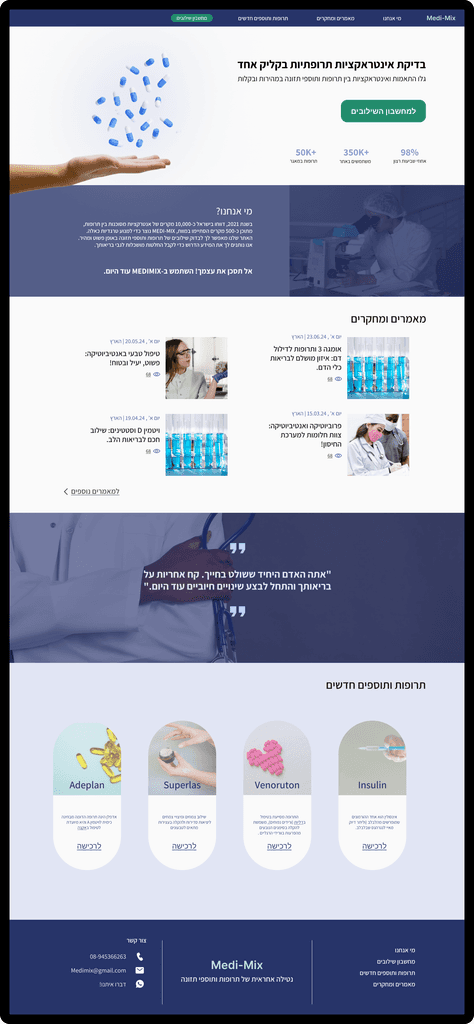 Given the concerning statistics around drug interactions, there was a clear need for an accessible tool like Medi-Mix to check for potential interactions between medications and nutritional supplements. The website is not intended to replace professional advice from doctors or pharmacists but aims to provide immediate information for users who cannot consult a professional..
